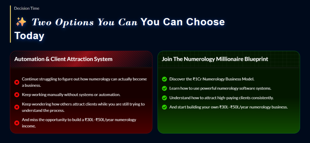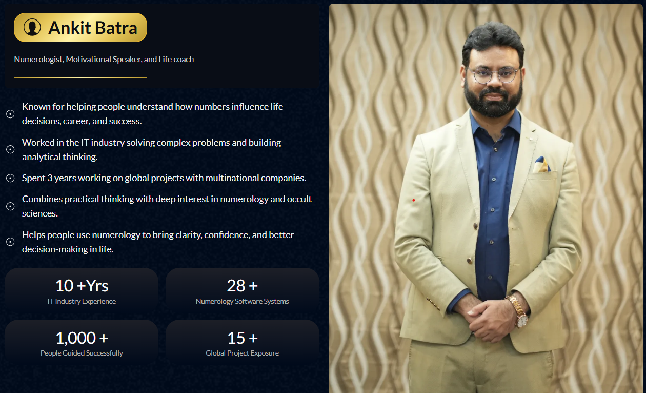 Huge Announcement for India 🇮🇳 Learn How To Build A ✨ Numerology Business Using AI Discover The ₹1Cr Numerology Business Secret, The Software System Behind ₹2Cr/Month Profits. EVENT STARTS IN: Date 10th - 12th April Time 8:00 PM IST Language English Where On Zoom CLAIM YOUR ₹999 FREE SEAT 3 Day Live: 10th - 12th April | 8:00 PM IST Hurry! Seats Of This Event As Of Today Is Low Ankit Batra Numerologist, Motivational Speaker, and Life coach Here's what you'll walk away With The ✨ Numerology Millionaire Blueprint The ₹1Cr Numerology Business ModelA clear understanding of how numerology can be turned into a profitable consulting business. The Automated Numerology SystemLearn how software and automation can help you run consultations faster and scale your work. A Proven Client Attraction FrameworkDiscover how to consistently attract people willing to pay for numerology consultations. Your First Client Acquisition PlanA practical roadmap to help you get your first numerology client. Remove Obstacles & Attract Comforts In LifeUnderstand the steps required to build and scale a numerology business. 10th - 12th April CLAIM YOUR ₹999 FREE SEAT 3 Day Live: 10th - 12th April | 8:00 PM IST How it works? The ✨ 3-Day Live Workshop Breakdown 🟡 And LOT MORE UNBELIEVABLE SURPRISES!! 🟡 CLAIM YOUR ₹999 FREE SEAT 3 Day Live: 10th - 12th April | 8:00 PM IST Hurry! Seats Of This Event As Of Today Is Low Meet The✨ Mentor Important Join The Numerology Millionaire Summit Today After registering, make sure you join the WhatsApp group. This is where you will receive: • Workshop reminders • Important updates • Access links for the live sessions CLAIM YOUR ₹999 FREE SEAT 3 Day Live: 10th - 12th April | 8:00 PM IST Hurry! Seats Of This Event As Of Today Is Low